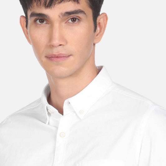 White Button Down Collar Solid Casual Shirt