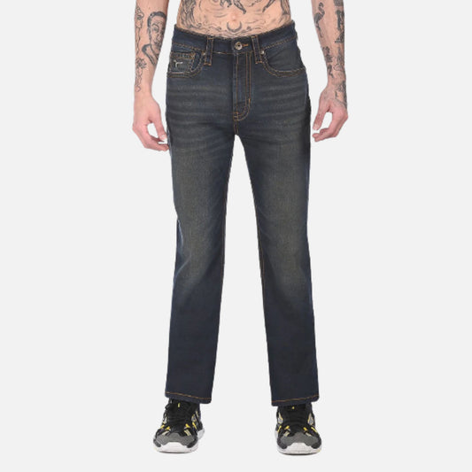 Blue Mid Rise Bruce Straight Fit Stone Wash Jeans
