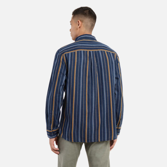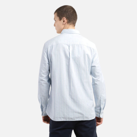 WASHED INDIGO STRIPED SLIM FIT SHIRT