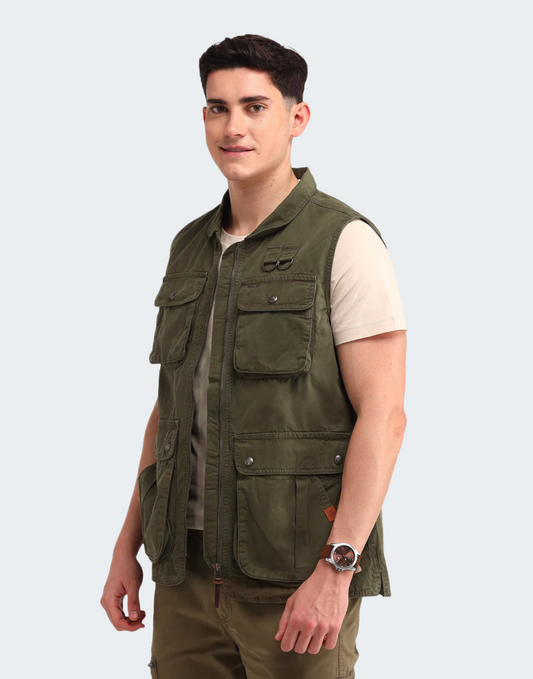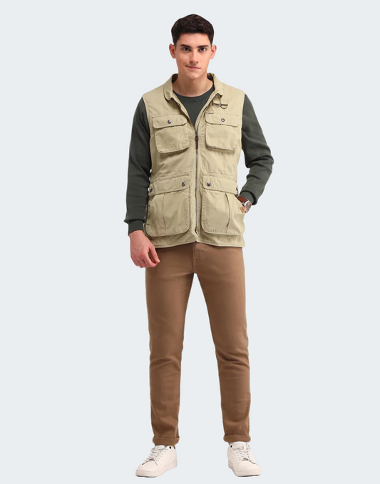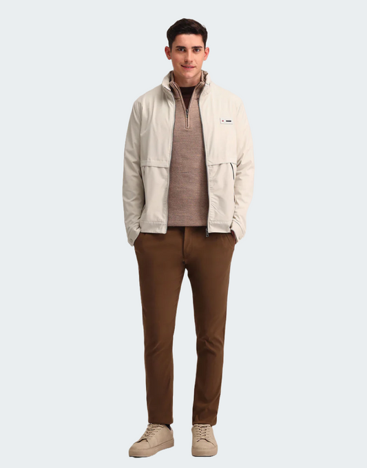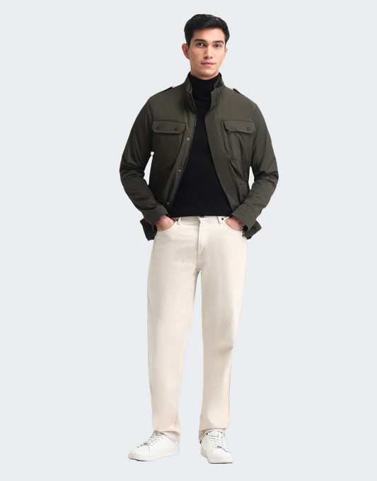 Khaki Solid Regular Fit Jacket