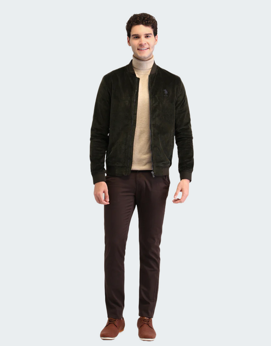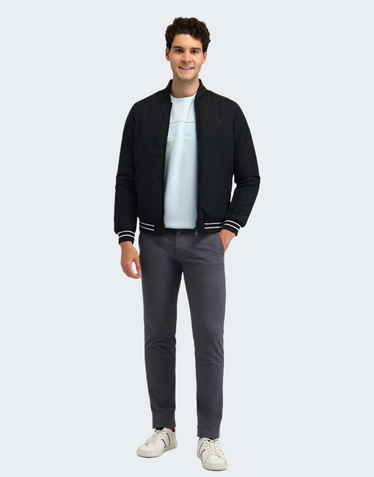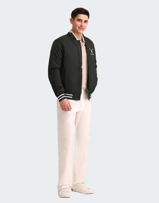 Regular Fit Solid Bomber Jacket