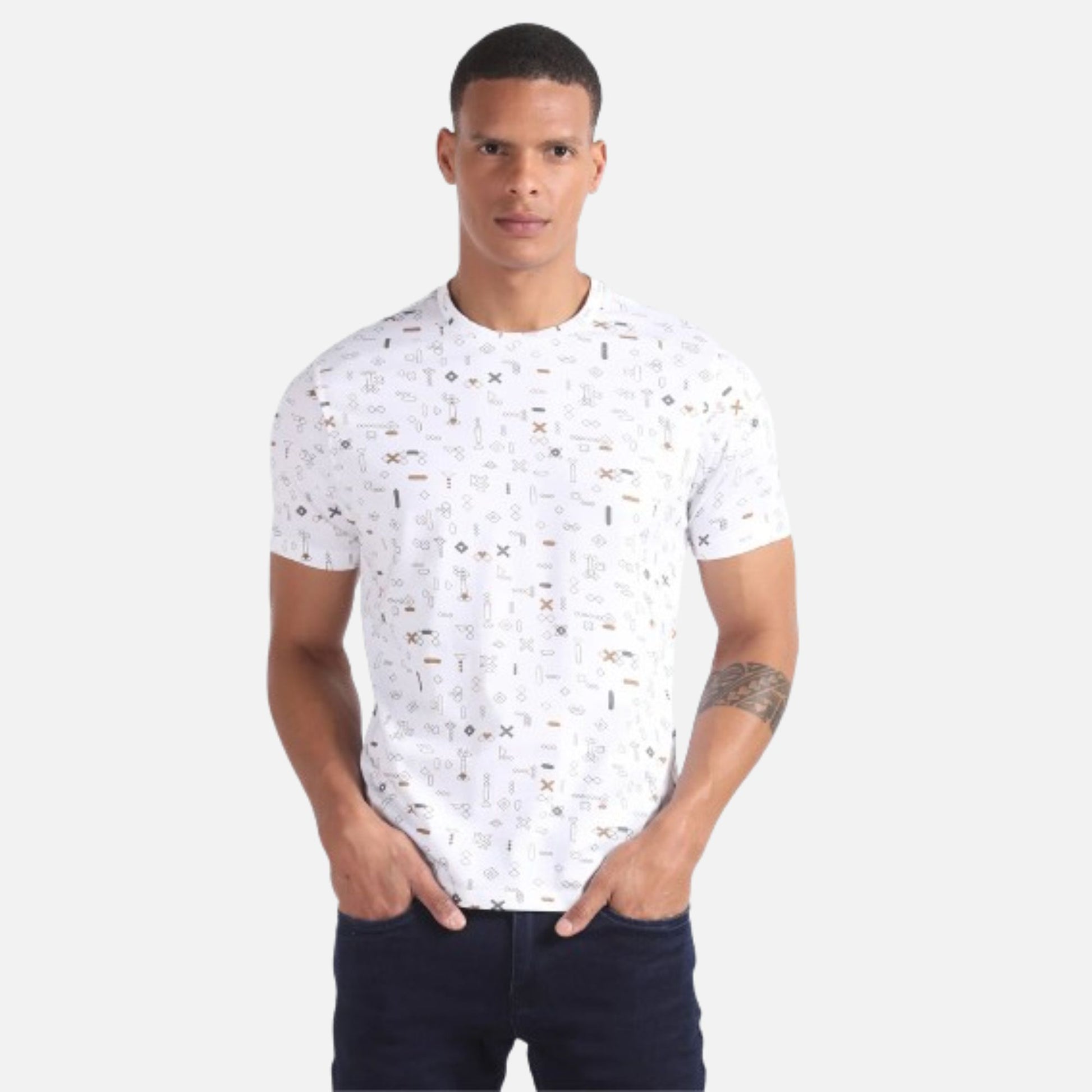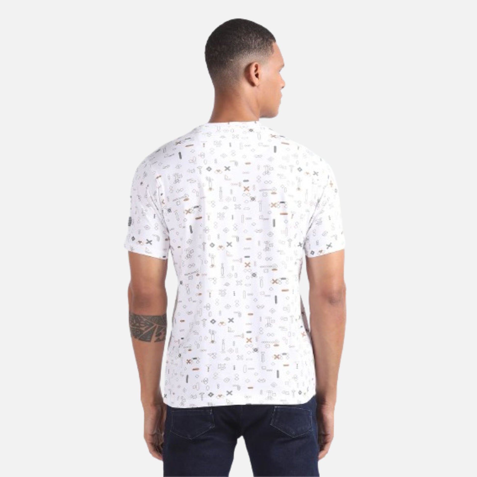 The all-over printed pattern gives the stamp of approval to the style credentials of this t-shirt crafted from pure cotton.