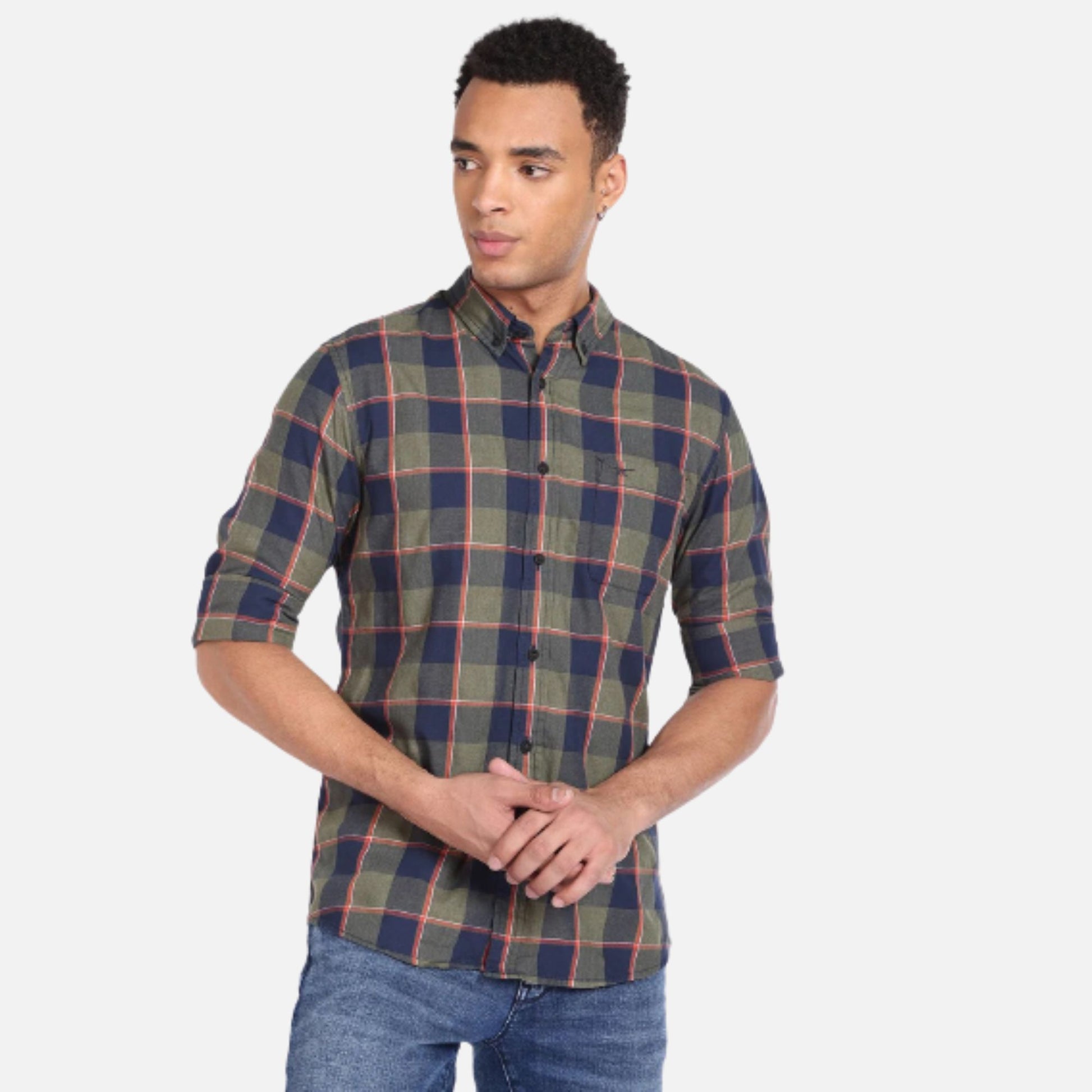 Button Down Collar Plaid Shirt