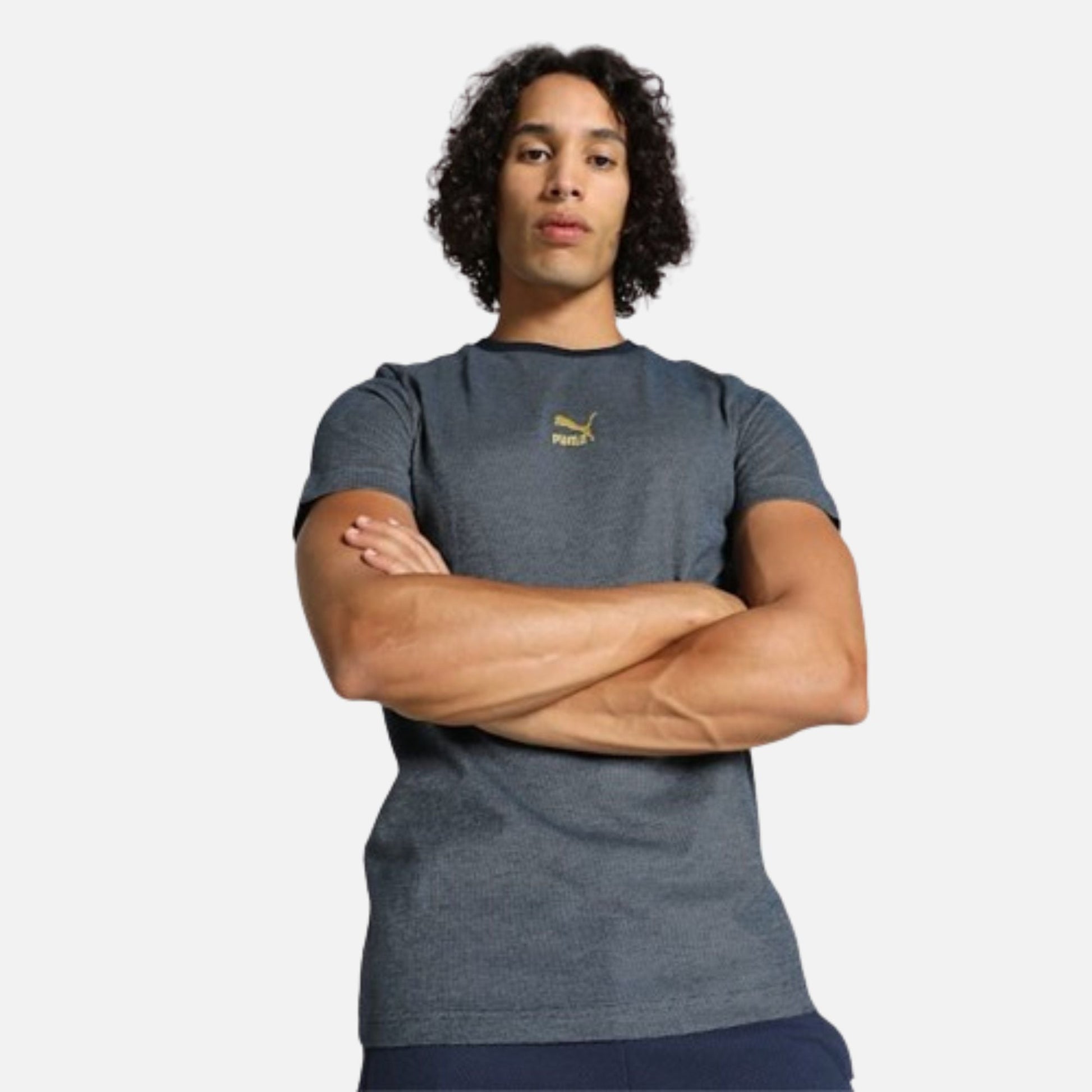 The Classics Men's Pique Slim Fit T-shirt boasts a sleek design with a ribbed design and embroidered PUMA cat logo on the front. This versatile tee is perfect for any workout or casual occasion. Made with lightweight and breathable fabric, it ensures comfort throughout the day.