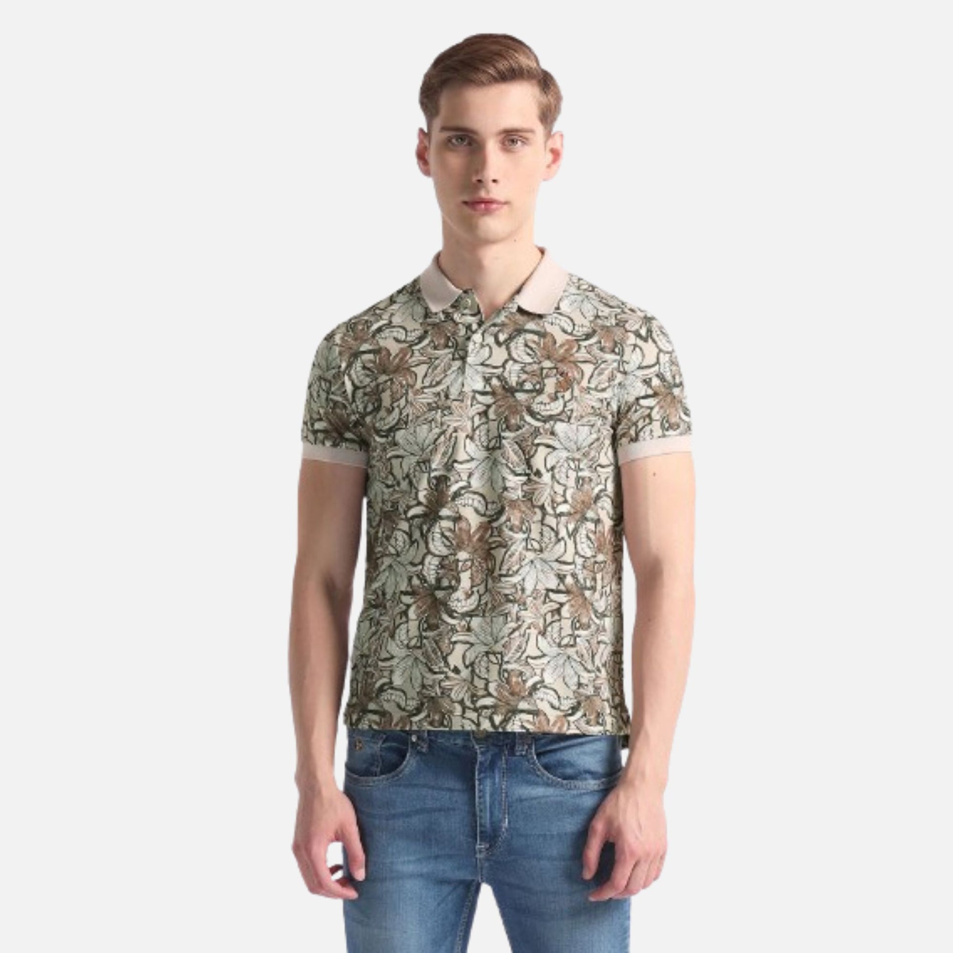 Floral Print Muscle Fit Polo Shirt