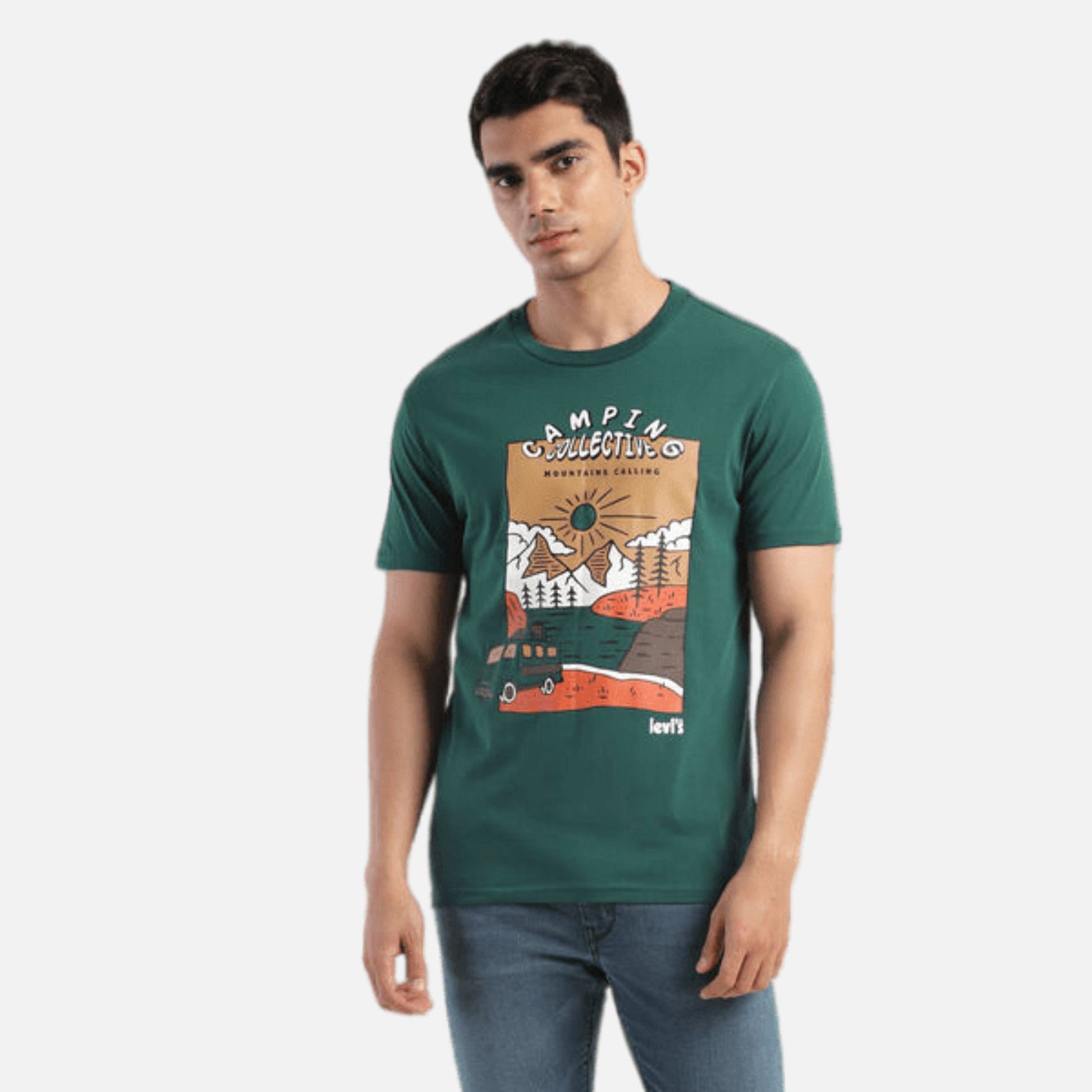 Step up your game and grab this latest t-shirt by Levi's for your wardrobe rotation. Ideal to wear with your jeans, shorts, or even your chinos, this green cotton t-shirt is designed to be versatile. We recommend keeping it simple and layering it with a solid-colored shirt for a casual night out with your friends.