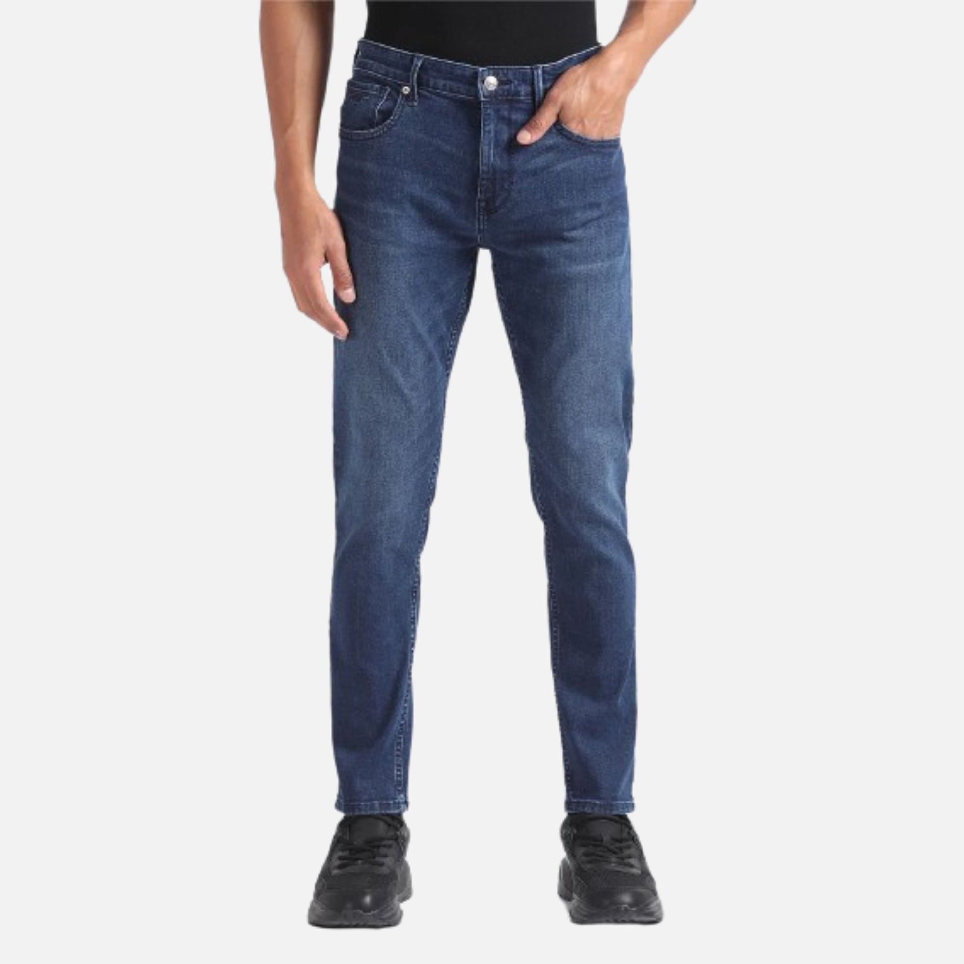 These jeans are cut from a durable cotton blend fabric and washed to replicate the attractive look of frequent wear.