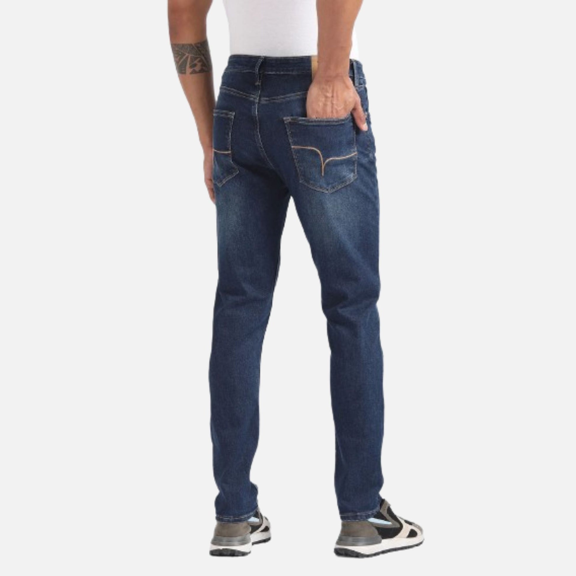 These jeans are cut from a durable cotton blend fabric and washed to replicate the attractive look of frequent wear.