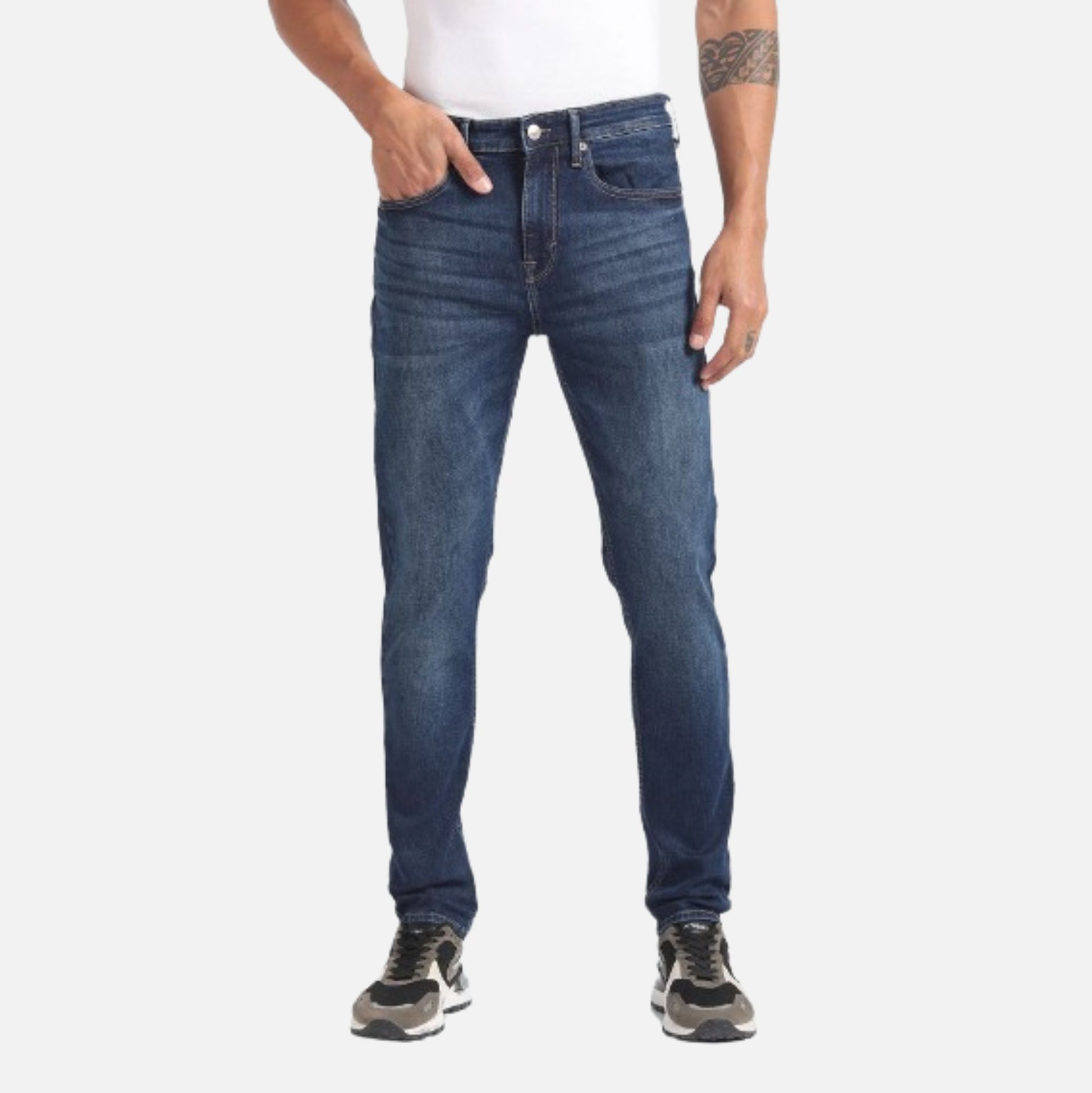 Mid Rise Slash Slim Tapered Jeans