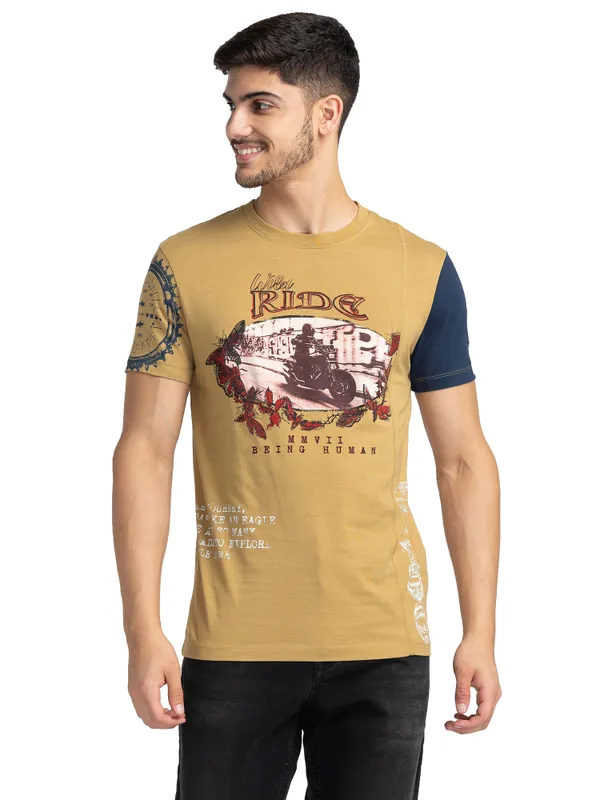 Calling All Bikers..We're Ready To Blast Off! This Stunning Camel Crew Neck T-Shirt Is Not For The Faint Of Heart. Featuring An Unmissable Bike Graphic On The Front And Convenient Short Sleeves, This T-Shirt Will Up Your Game At Any Casual Wear Event.