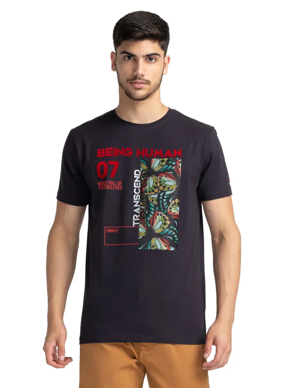 This Nature-Inspired Charcoal T-Shirt Makes For The Perfect Outfit Starter Pack. Its 'Being Human' Graphic, Short Sleeves, And Crew Neck Adds An Undeniable Charm. The T-Shirt Is Made From A Cotton-Rich Fabric For Maximum Comfort.