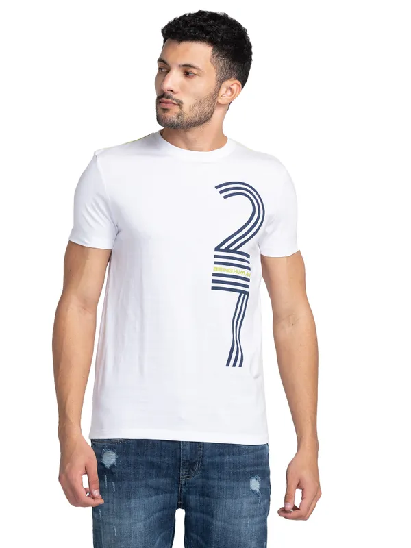 Be The Best Dressed Wherever You Go With This White Crew Neck T-Shirt. Cut From A Pure Cotton Fabric, Its Short Sleeves And Cool Numerical Print Will Leave You Rolling In Compliments.