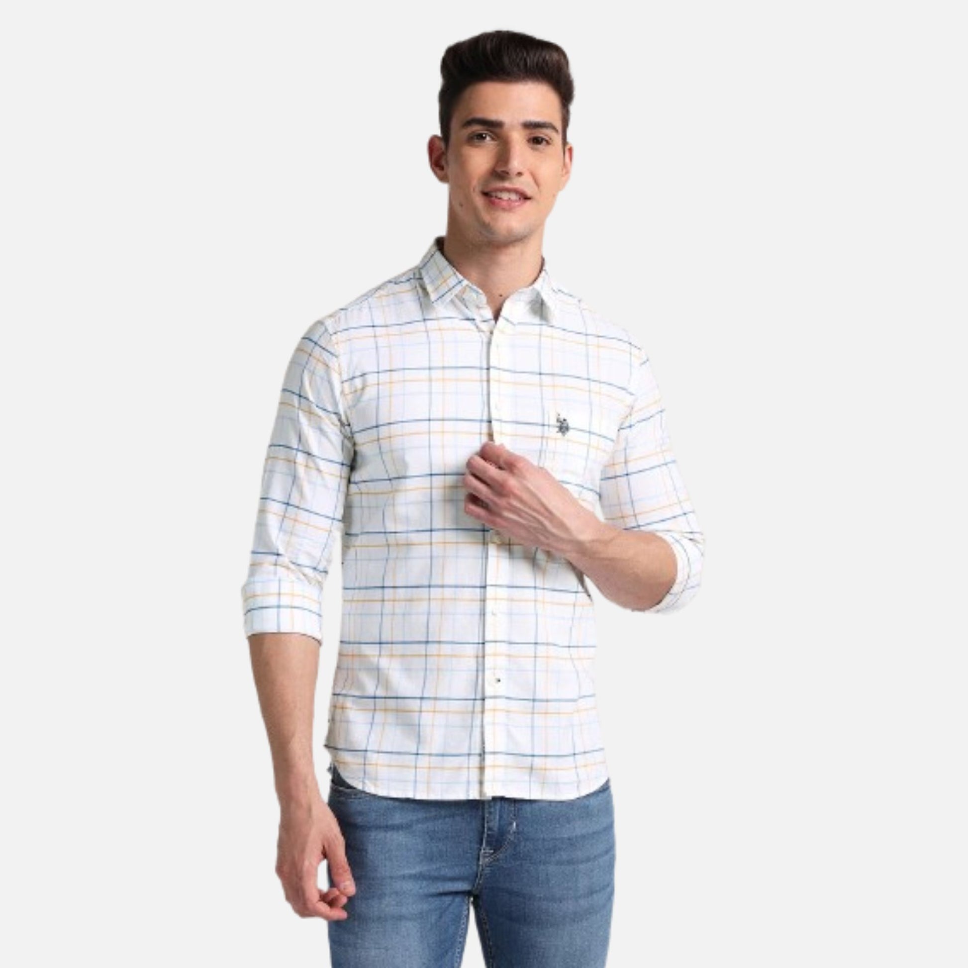 This tailored-fit shirt in a colourful checked pattern is an easy way to upgrade your casual collection.